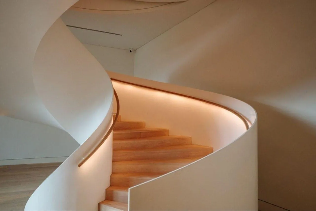 Полезный совет: Чтобы усилить эффект «парящих» ступеней, используйте направленную подсветку. Небольшие точечные светильники, установленные в стене под каждой ступенью или над ними, создадут в вечернее время потрясающую игру света и тени, подчеркнув воздушную геометрию лестницы.